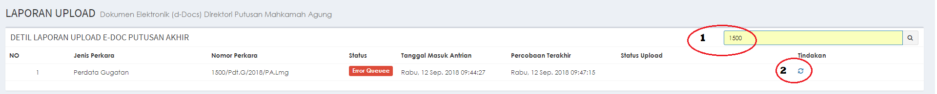 | No | No Perkara | Tanggal Putus | Keterangan |